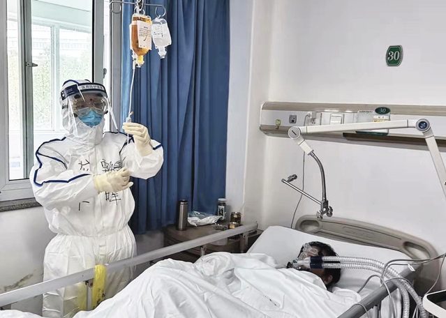 上海市中医医院医护人员在武汉金银潭医院救治患者