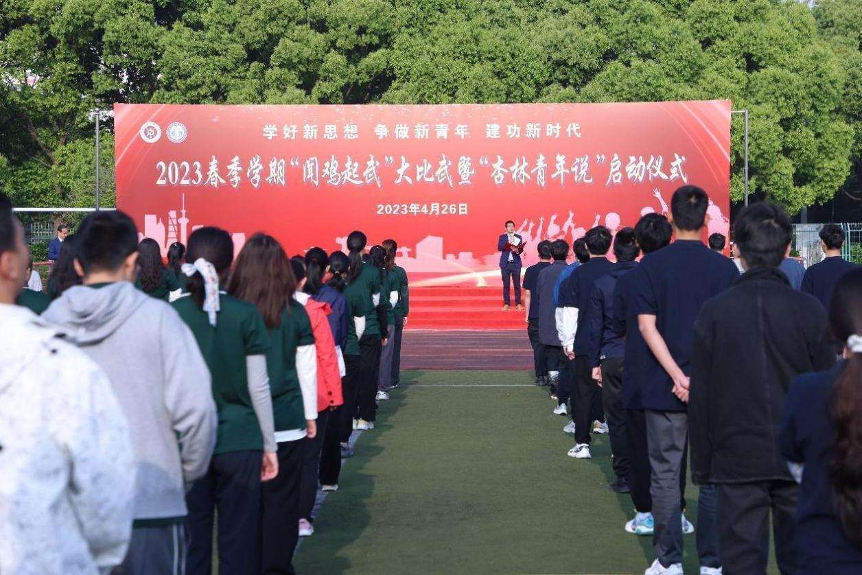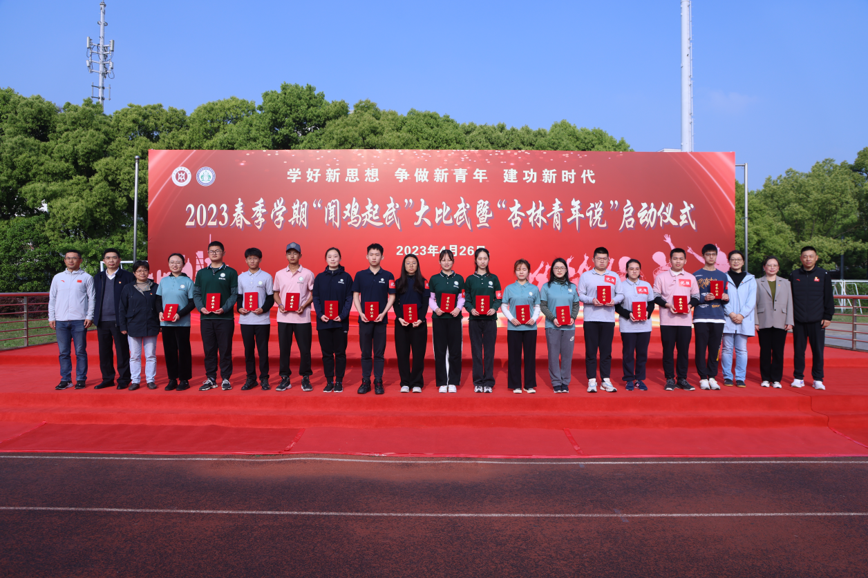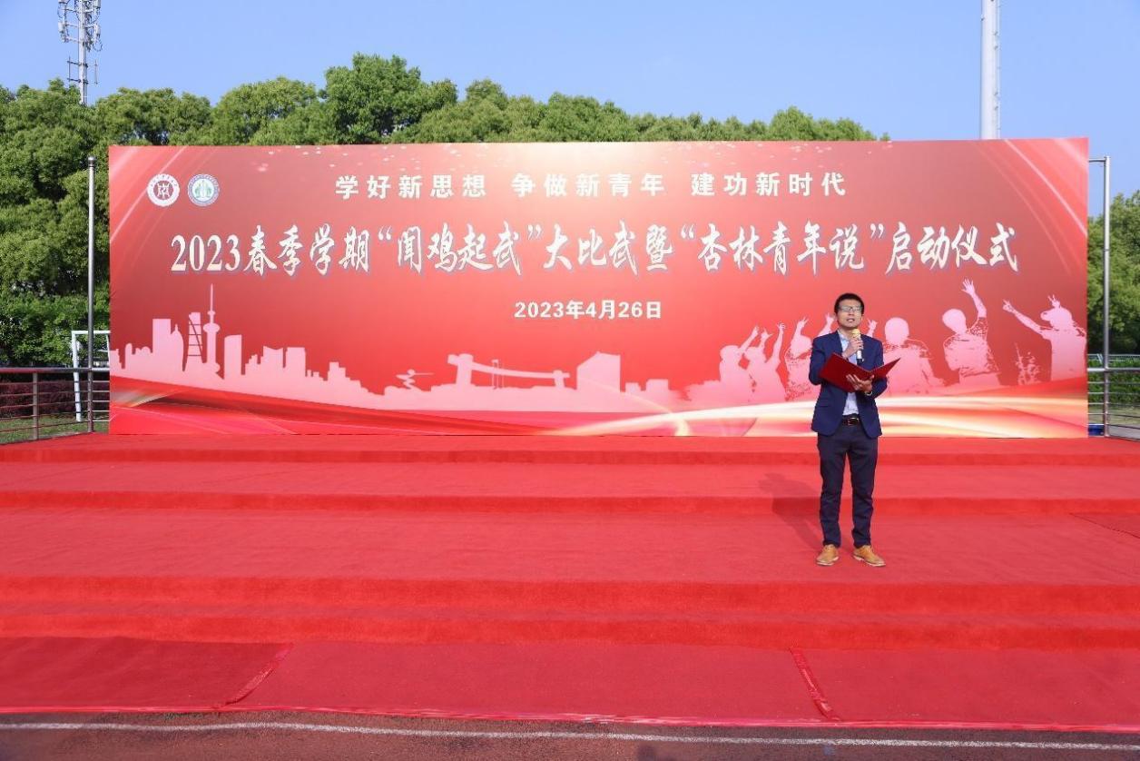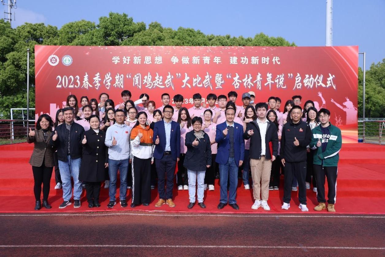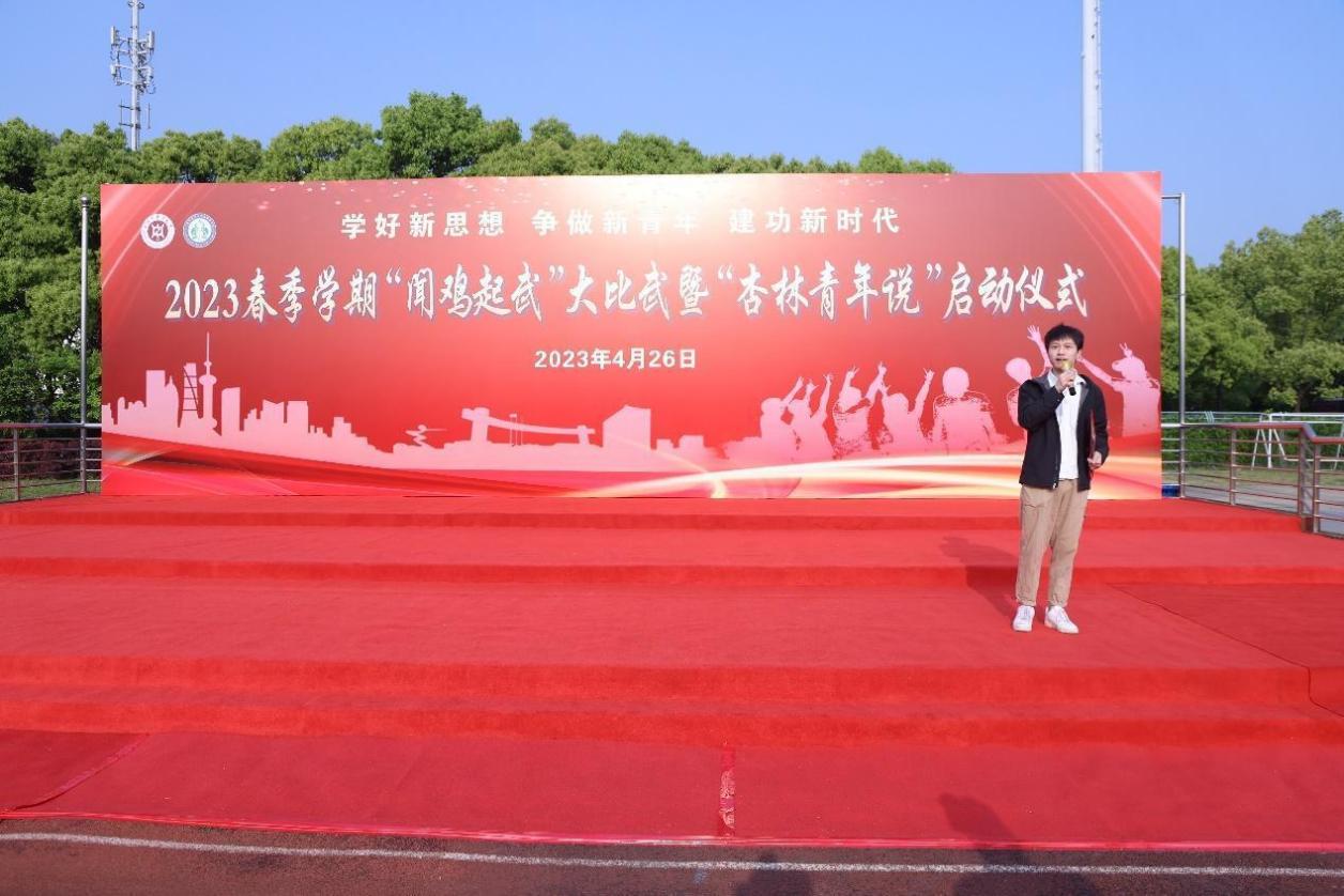 晨起闻鸡鸣,“武”动正青春。426日清晨,2023年春季学期“闻鸡起武”大比武暨“杏林青年说”启动仪式在学校体育场举行。基础医学院党委、体育部党支部、党建共建单位的党员代表、基础医学院2022级全体学生等近300名师生参加。活动由2021级中医学(屠呦呦班)常睿发和朱逸菲主持。
