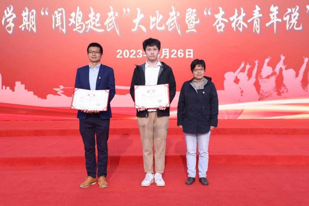 育时代新人,既要“文明其精神”,也要“野蛮其体魄”。“闻鸡起武”大比武传播“给青年一个健康体魄”的好声音,展现医学青年追求全面发展踔厉奋发的青春姿态。中医学子们身着象征“我们是一个集体”的班服开启“大比武”。沐浴着晨光,身着不同颜色班服的中医学子们习练由东汉名医华佗创编的《五禽戏》,呈现一场诉说青春与力量的“武林大会”。经过角逐,2022级中医学(五年制)班获集体一等奖,2022级中医学(屠呦呦)班、2022级中西医临床医学班获集体二等奖,2020级中医学(5+3一体化)班、2022级预科班获集体三等奖,张又臻等15名同学获个人优胜奖。出席活动的嘉宾、老师们为获得荣誉的班级和个人颁发证书。