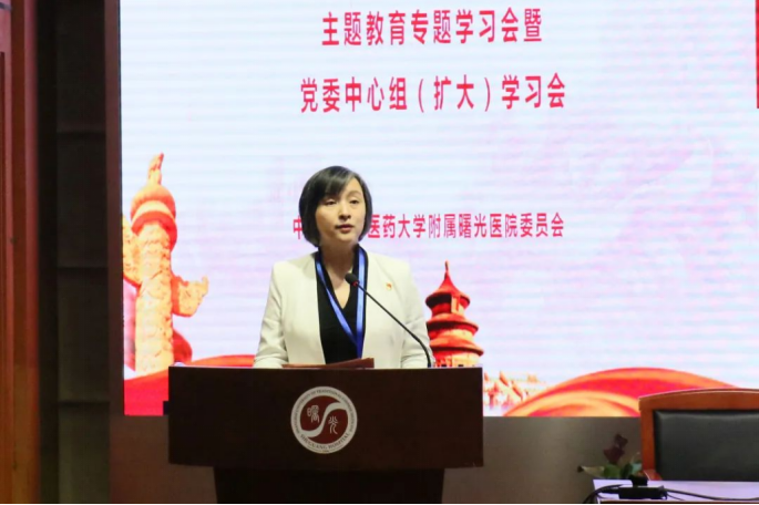 为深入推动学习贯彻习近平新时代中国特色社会主义思想主题教育走深走实,5月2日下午,附属曙光医院在东院二楼学术报告厅举行学习贯彻习近平新时代中国特色社会主义思想主题教育专题学习会暨党委中心组(扩大)学习会。上海市委党校谷宇教授作题为《学思想、强党性、重实践、建新功——学习贯彻习近平新时代中国特色社会主义思想主题教育学习要求解读》的专题讲座。医院领导班子、党委委员、纪委委员、党总支书记、支部书记、各职能部门负责人、临床科室科主任、研究室主任、教研室主任、科护士长、护士长、党支部纪检委员、团委委员以及医院青年管理骨干培训班学员等参会。会议由医院党委副书记、纪委书记郝微微主持。