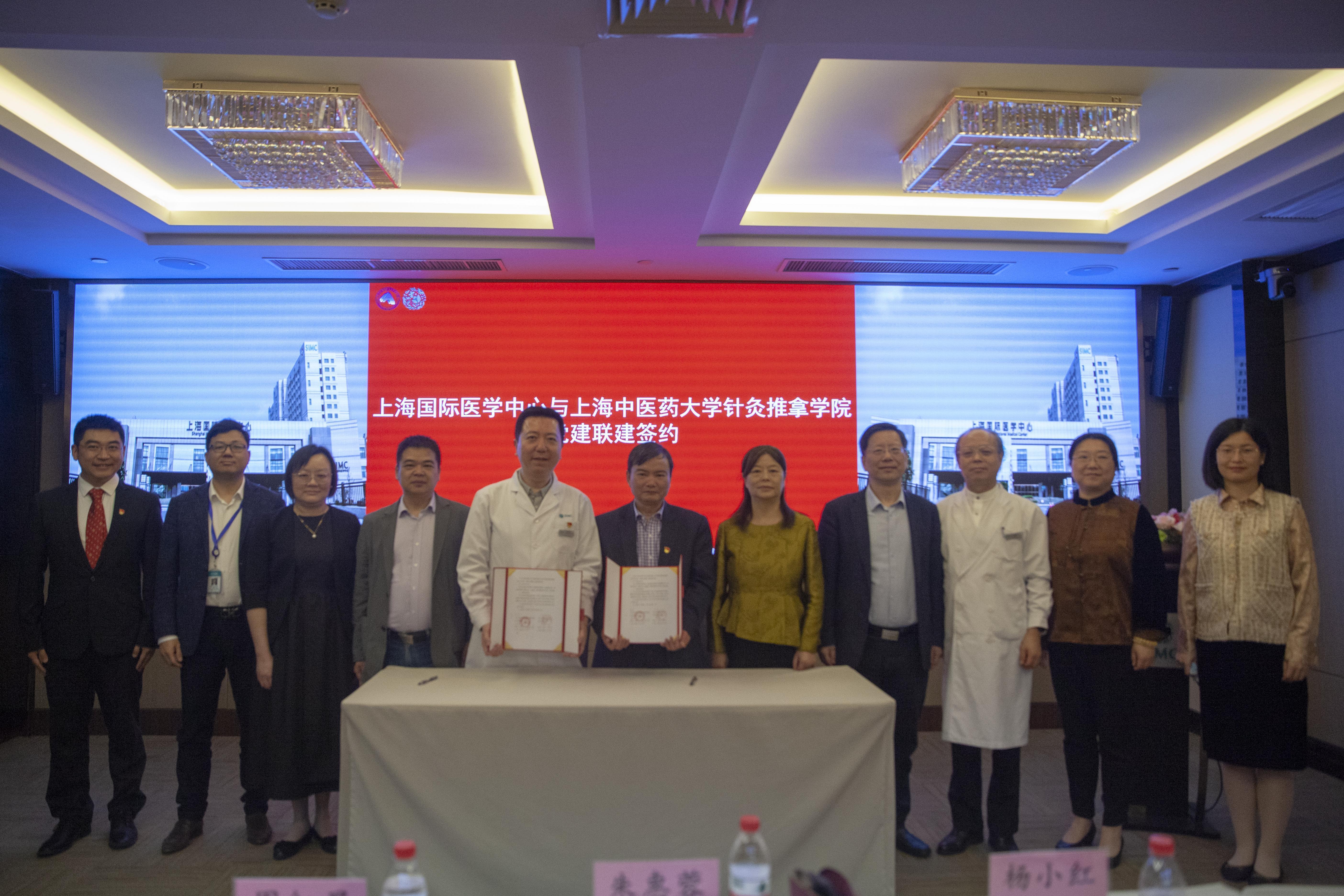 中共天游ty8线路检测中心登录针灸推拿学院总支部委员会与中共上海国际医学中心党总支部委员会相关负责人签署《天游ty8线路检测中心登录针灸推拿学院-上海国际医学中心党建联建协议书》。