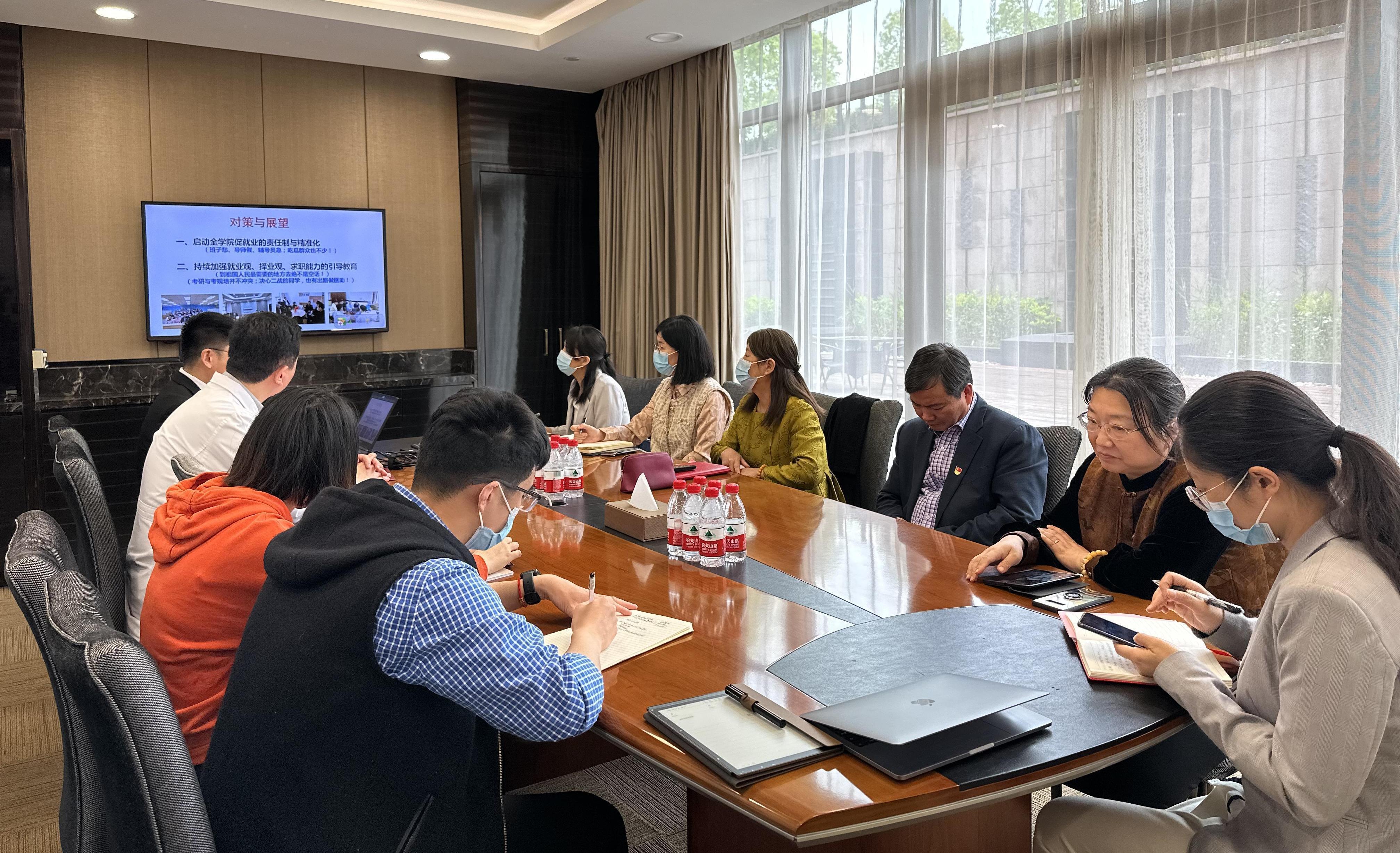 天游ty8线路官网始终重视大学生就业工作,通过全过程开展职业生涯规划教育、全方位建设岐黄育人实践基地、书记校长访企拓岗等多措并举,促进高校毕业生更加充分和更高质量就业。结合深入开展学习贯彻习近平新时代中国特色社会主义思想主题教育,朱惠蓉带领学生工作部(处)和针灸推拿学院负责同志及学生代表,围绕促进高质量充分就业专题,在上海国际医学中心开展深入调研,并针对加强大学生就业观、择业观教育,校外实践基地资源共享等提出具体指导意见。