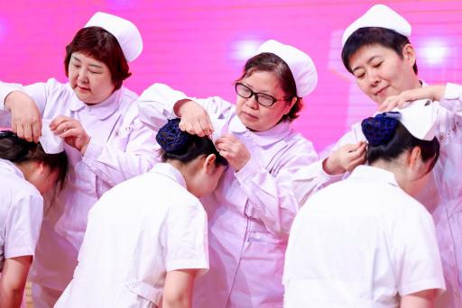 来自天游ty8线路官网9家附属医院的护理部主任及学院教师代表,为近200名学生逐一戴上神圣的燕尾帽。