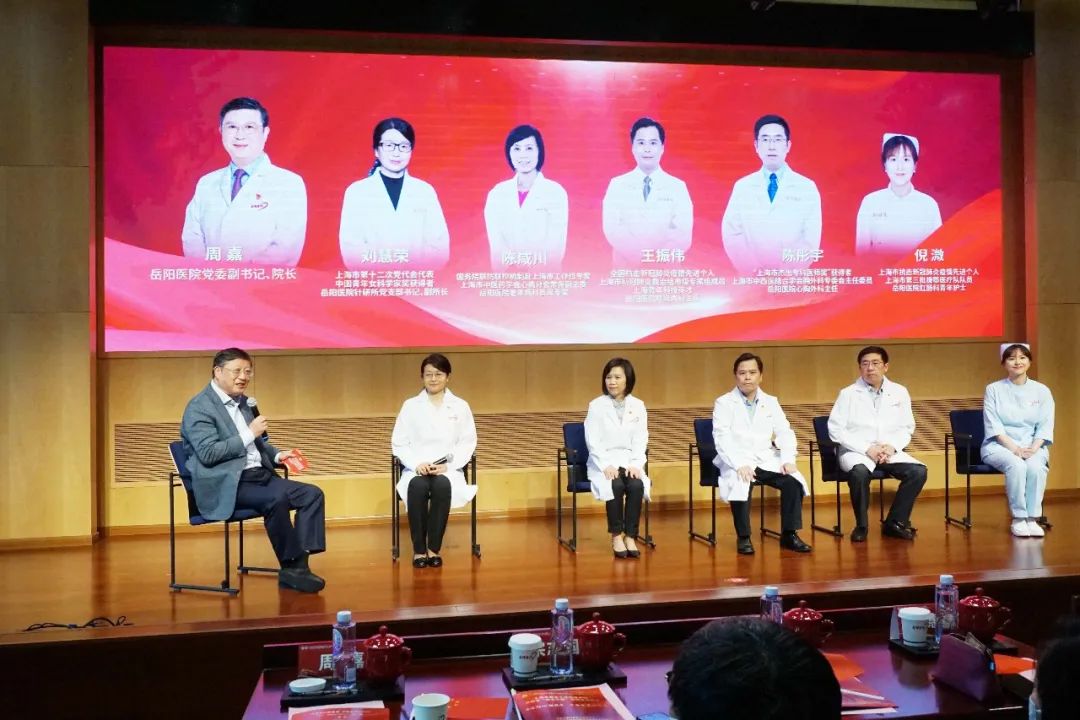 党员先锋代表微访谈环节由周嘉主持。上海市针灸经络研究所党支部书记、副所长刘慧荣,老年病科首席专家陈咸川,呼吸内科主任王振伟,心胸外科主任陈彤宇和肛肠科青年护士倪溦5位岳阳医院党员先锋代表讲述了他们如何在岗位上践行一名共产党员的责任与担当。