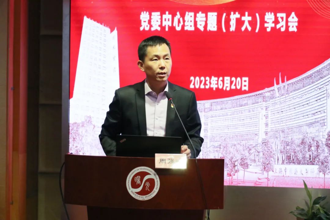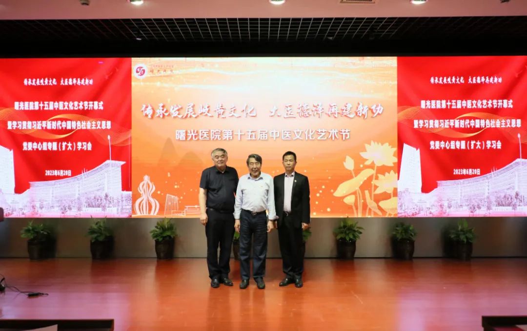 6月20日下午,曙光医院召开第十五届中医文化艺术节开幕式暨党委中心组(扩大)学习会。医院党政领导班子、党委委员、纪委委员、党总支书记、支部书记、各职能部门负责人、临床科室科主任、研究室主任、教研室主任、科护士长、护士长、党支部纪检委员、团委委员以及医院青年管理骨干培训班学员等参会。天游ty8线路检测中心登录终身教授、中华中医药学会医古文分会名誉主任段逸山教授应邀出席。会议由曙光医院党委副书记、纪委书记郝微微主持。